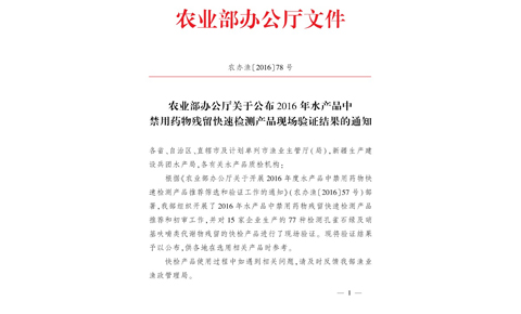 根據(jù)《農(nóng)業(yè)部辦公廳關(guān)于開展2016年度水產(chǎn)品中禁用藥物快速檢測產(chǎn)品推薦篩選和驗(yàn)證工作的通知》(農(nóng)辦漁〔2016〕57號)部署,農(nóng)業(yè)部組織開展了2016年水產(chǎn)品中禁用藥物殘留快速檢測產(chǎn)品推薦和初審工作,上成生物送檢產(chǎn)品全部通過現(xiàn)場驗(yàn)證。上成生物申請高新技術(shù)企業(yè)獲得通過
