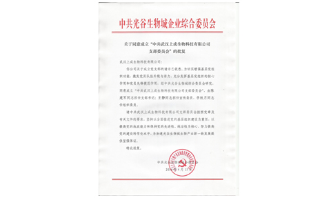 在公司團隊的努力下,上成生物提交的成立支部委員會的申請,已由中共光谷生物城綜合委員會批復(fù)同意。上成生物成立“工會委員會”