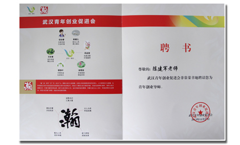 2013年陳建軍同志榮獲第九屆洪山區(qū)“十大優(yōu)秀青年"稱(chēng)號(hào)。武漢市大學(xué)生創(chuàng)業(yè)先鋒