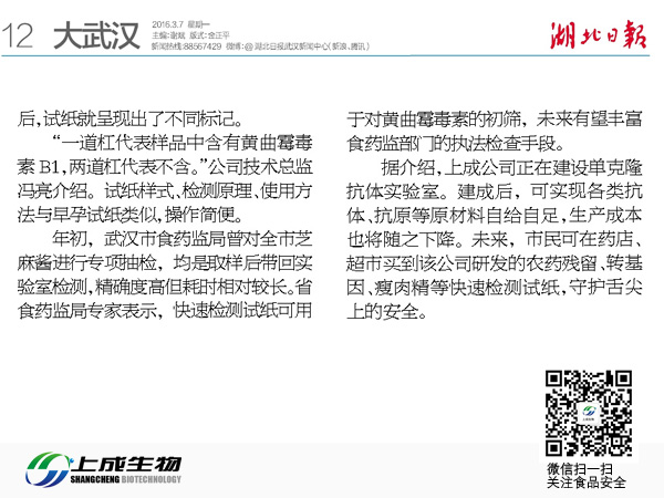 湖北日?qǐng)?bào):2分鐘可測(cè)芝麻醬中有無致癌物質(zhì)