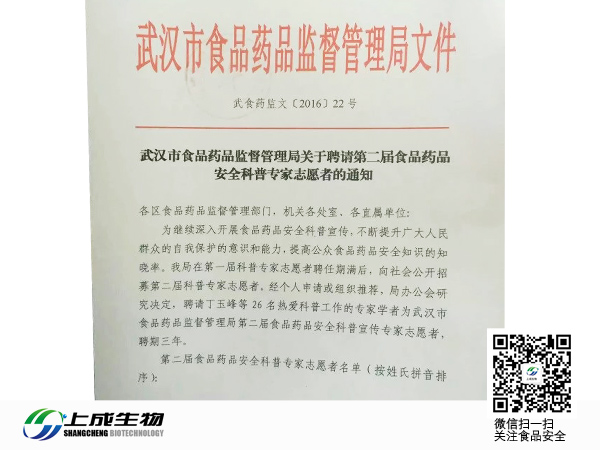 武漢市食品藥品監(jiān)督管理局聘請孟利君為安全科普宣傳專家志愿者