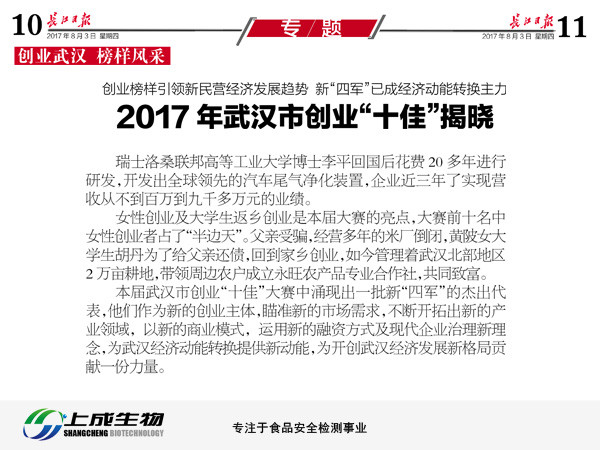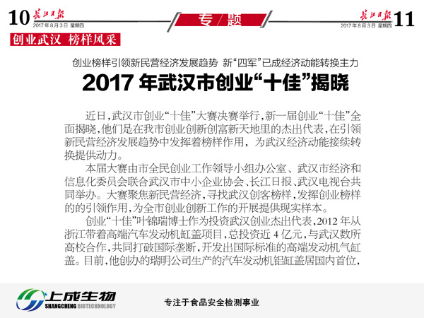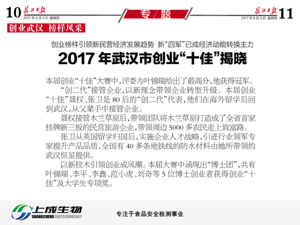 長江日報(bào):2017年武漢市創(chuàng)業(yè)“十佳”揭曉