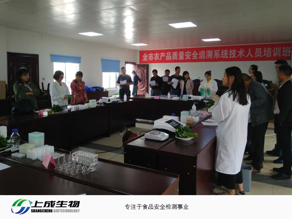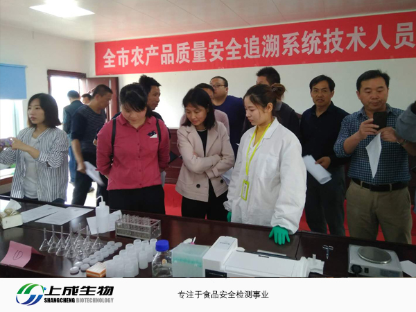 2018年4月12日,上成生物技術(shù)人員赴黃陂培訓(xùn)全市農(nóng)產(chǎn)品質(zhì)量安全追溯系統(tǒng),為黃陂區(qū)農(nóng)牧企業(yè)和各街道辦檢測室技術(shù)人員提供技術(shù)指導(dǎo)與服務(wù)。