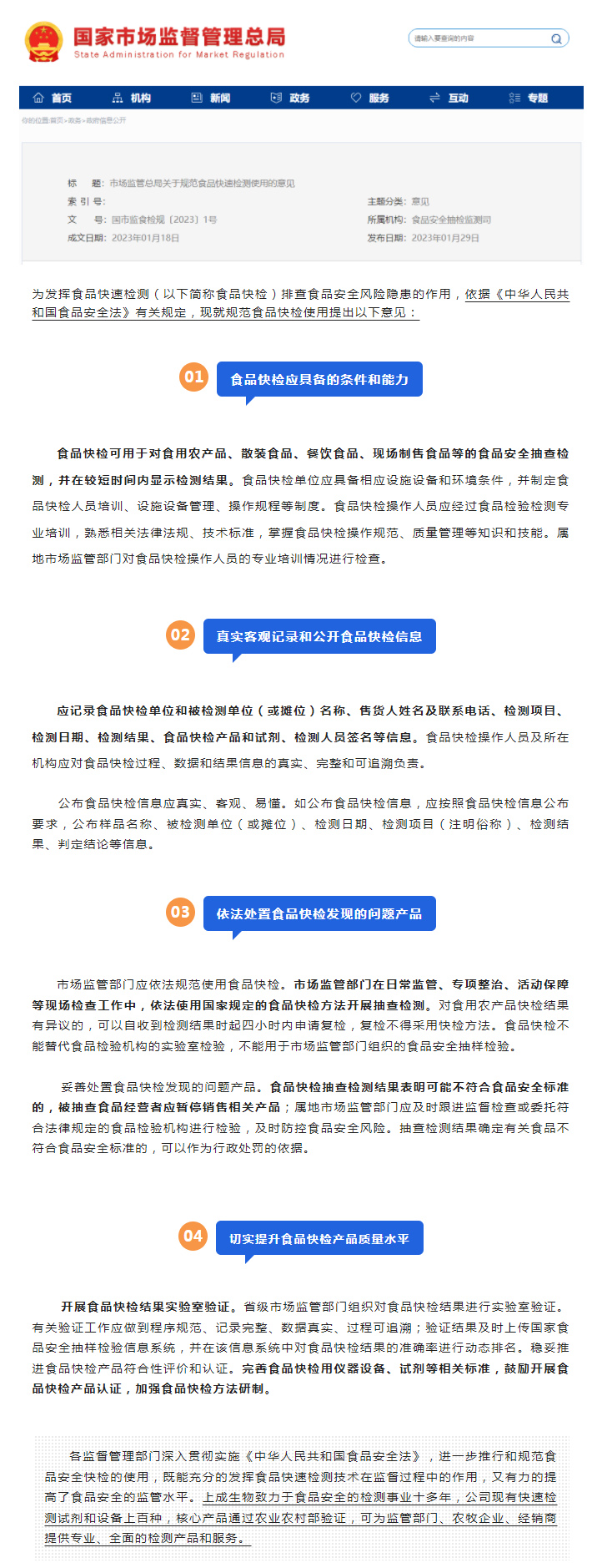 關(guān)于規(guī)范食品快速檢測(cè)使用的意見(jiàn)